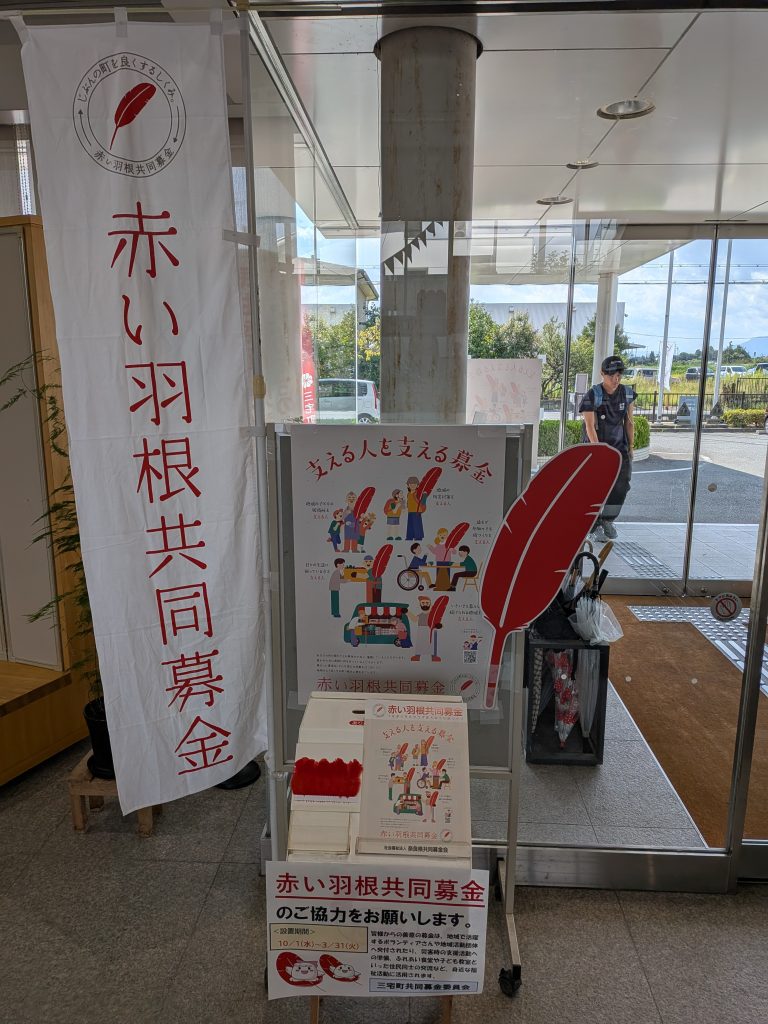 今年も10月1日より、全国一斉に「赤い羽根共同募金」が始まり、三宅町では1日に石見駅前・但馬駅前で民生児童委員さんの協力のもと街頭募金を行い、6日には町内の関係庁舎を回り、森田町長をはじめ町職員の皆様に職域募金を実施させていただきました。